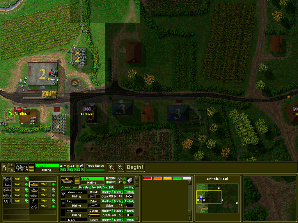 First, I had edited specific Team details and made graphic indicators on the Maps for some reason at the time. And second is the battle Health and Kills Briefs where I was seriously wounded and yet managed to destroy a T34! So here are 6 Map screenshots and some Team Rosters and Health and Kills Briefs from that action. It is really so long ago I cannot remember more details.