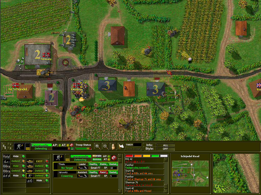 Meanwhile my Schutzen and Flammenwerfers had cleared out the VL House and were preparing to take the assault to the next house. For that I was going to bring up the StuH 42 in support, as you will see in the next screen.