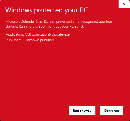 You can also set this permanently in CC3.exe → Properties → Compatibility.