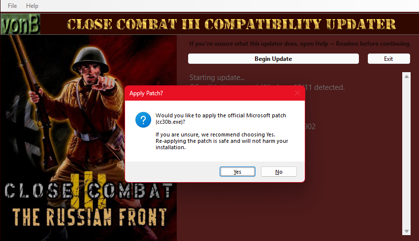 It is recommended that you close all other applications before running the updater, including Close Combat III itself.