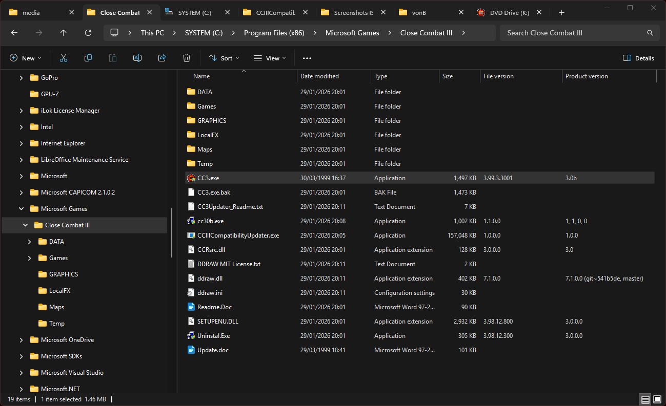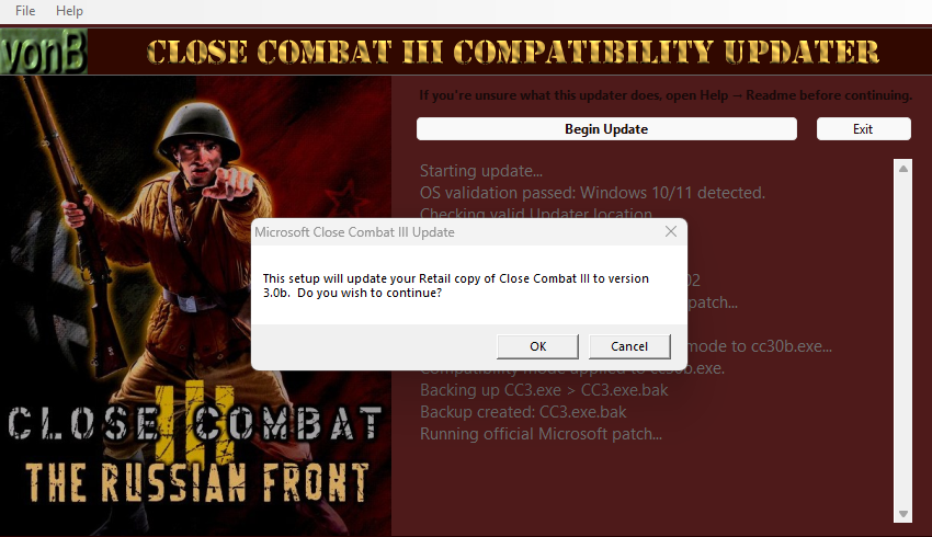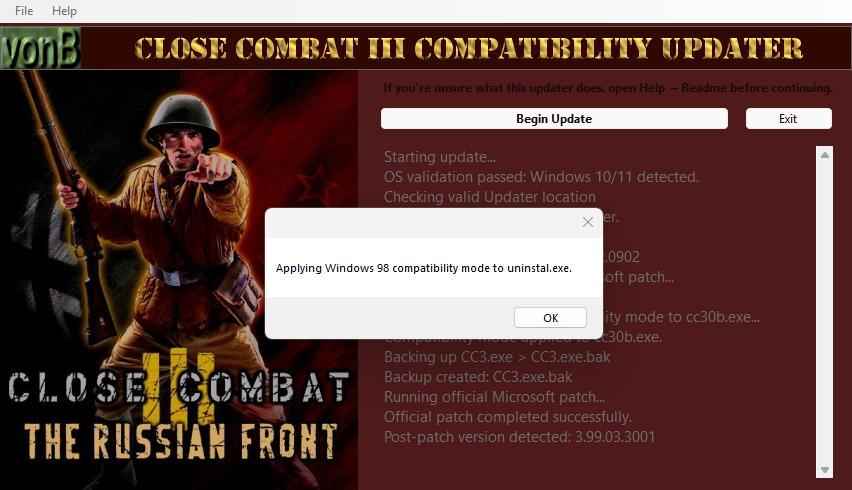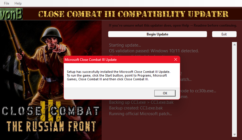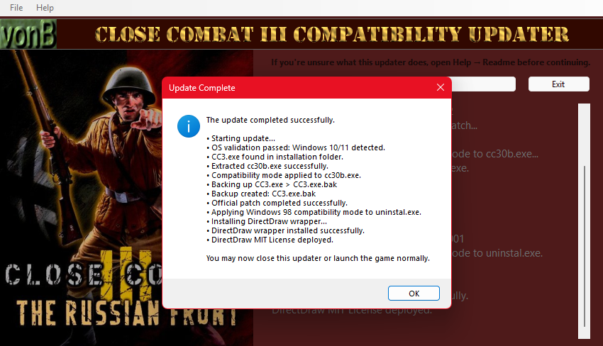 All changes made by the updater are local to your Close Combat III installation and are fully reversible.